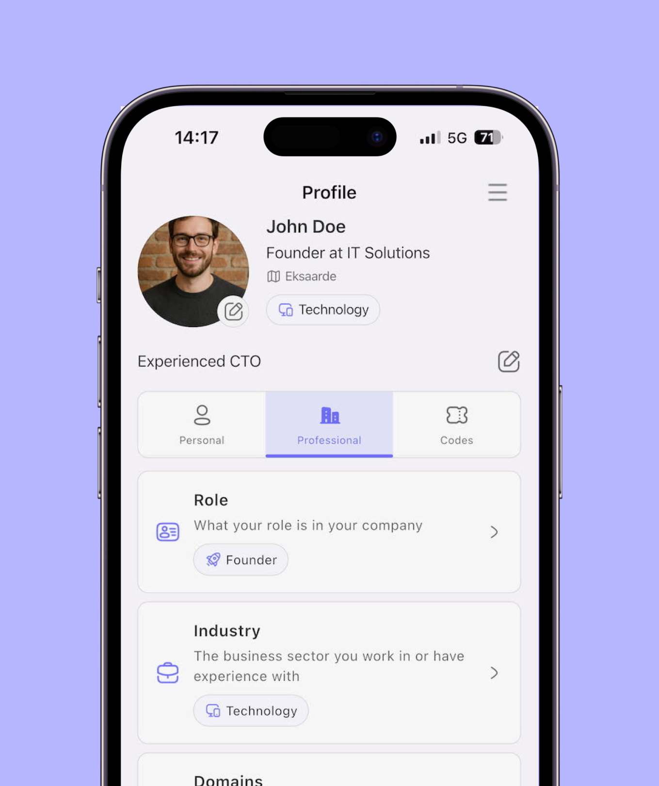Our AI Assistant searches for matches 24/7. You can answer the prompts whenever you want, and we match you with interesting profiles. Once there is mutual interest on a match, you'll receive an introduction mail so you can expand your network.